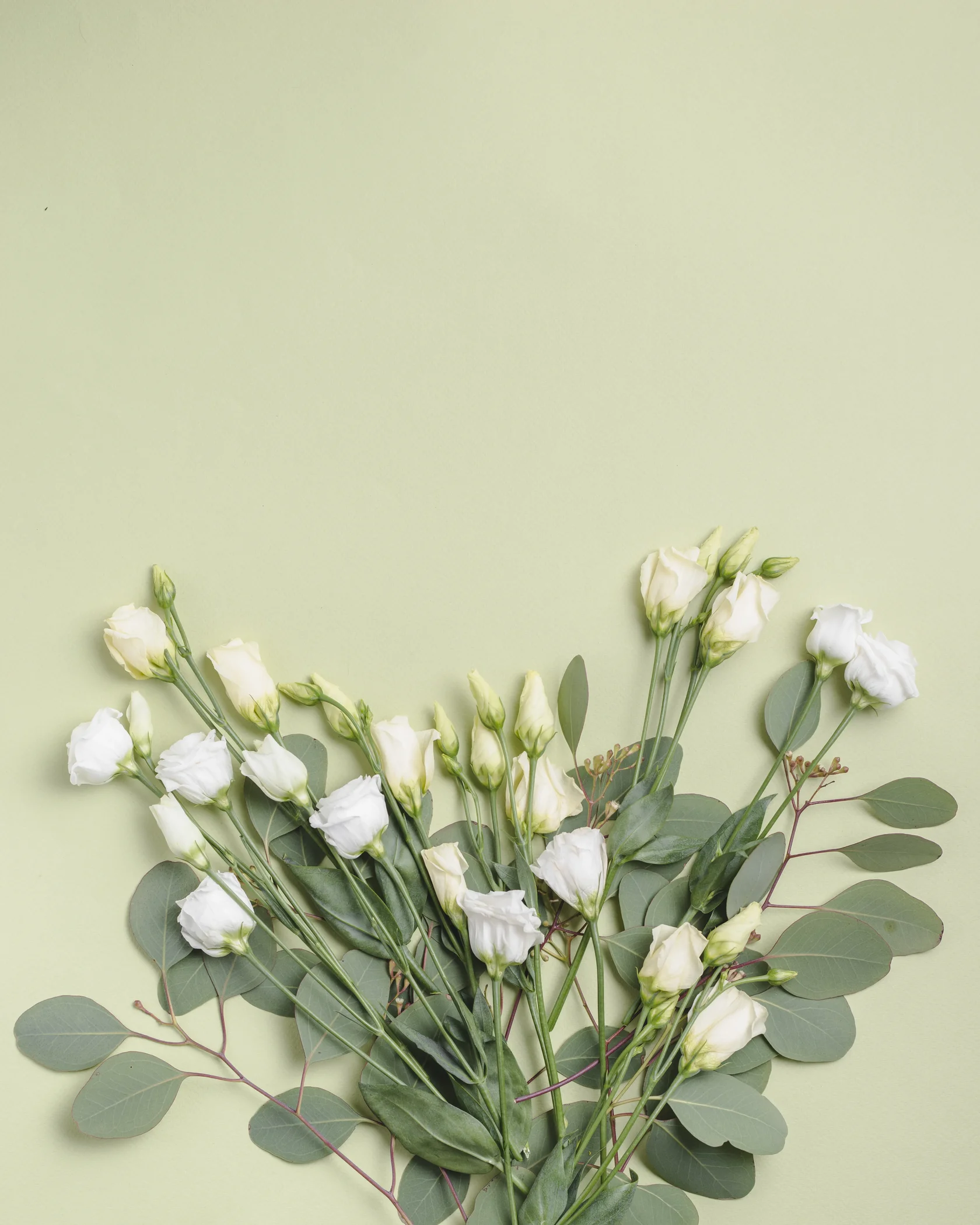 - Для коллег выбирайте белые или фиолетовые лизиантусы, которые можно дополнить веточками эвкалипта и лаконичным оформлением;