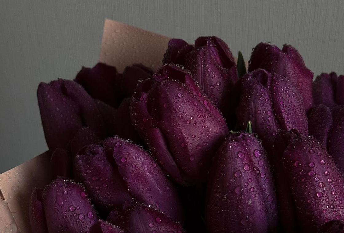 - Тюльпаны - фиолетовые или бордовые подчеркнут страсть и загадочность, привнося нотку таинственности.